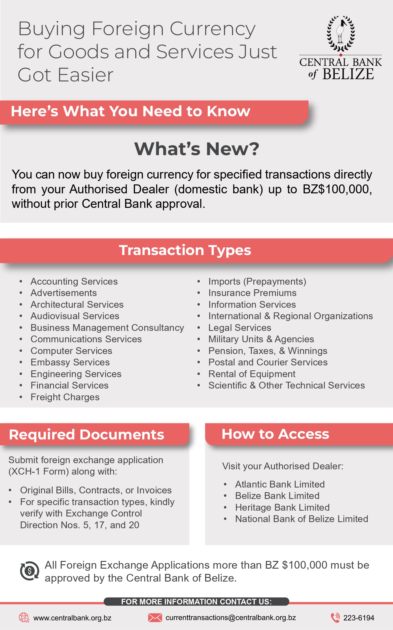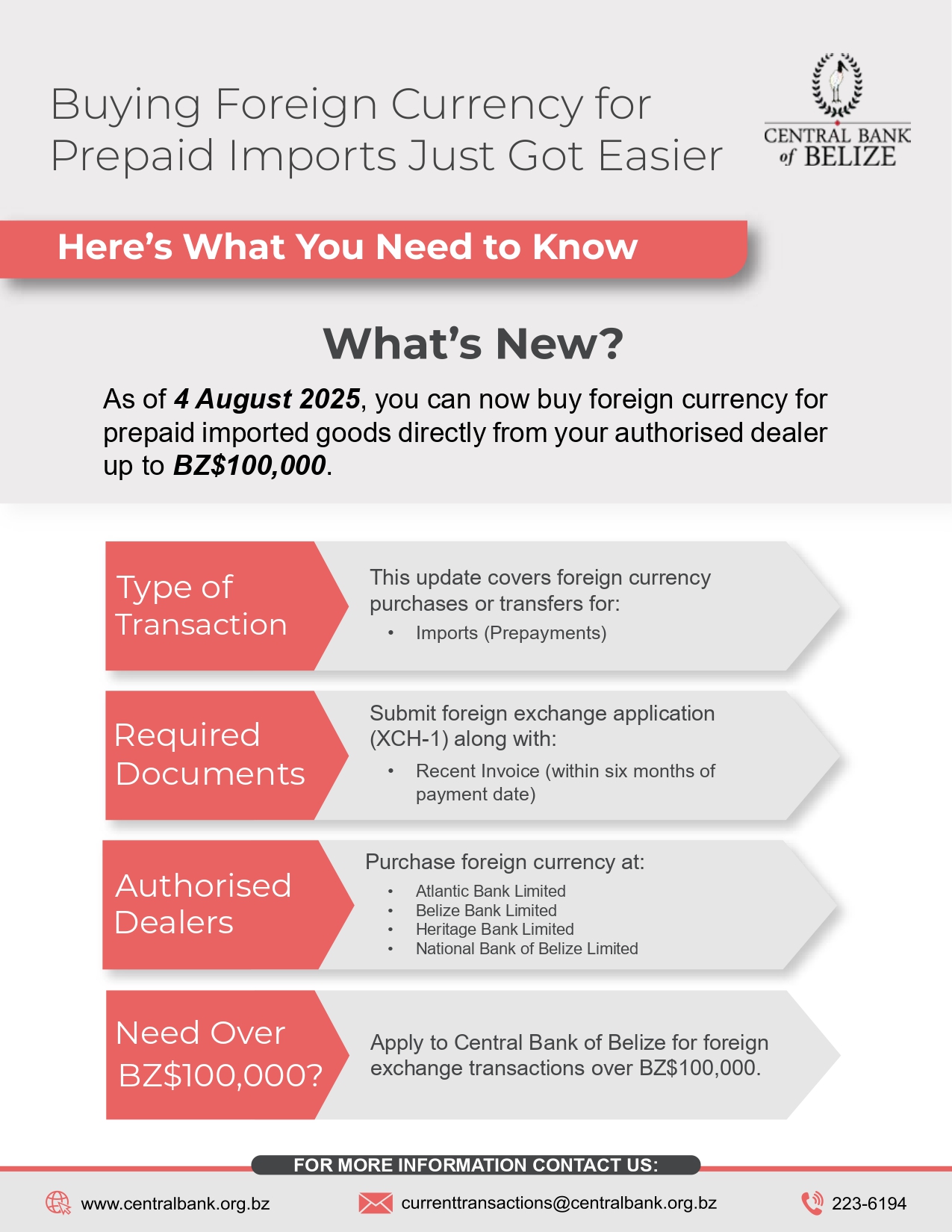 In its ongoing commitment to foster a more business-friendly environment and improve operational efficiency, the Central Bank of Belize has broadened the scope of its Delegation of Authority to authorised dealers (domestic banks). Learn more: