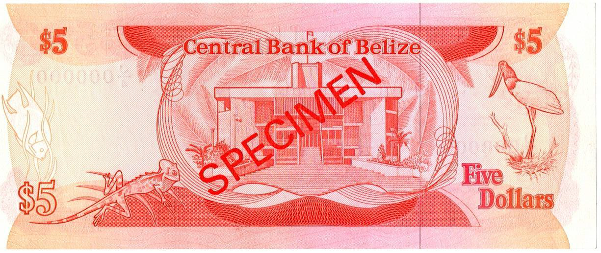 This issue under the Central Bank of Belize maintained the design of banknotes issued under the Monetary Authority of Belize. The design theme of these notes highlighted Belize’s birds, animals, marine life and buildings.