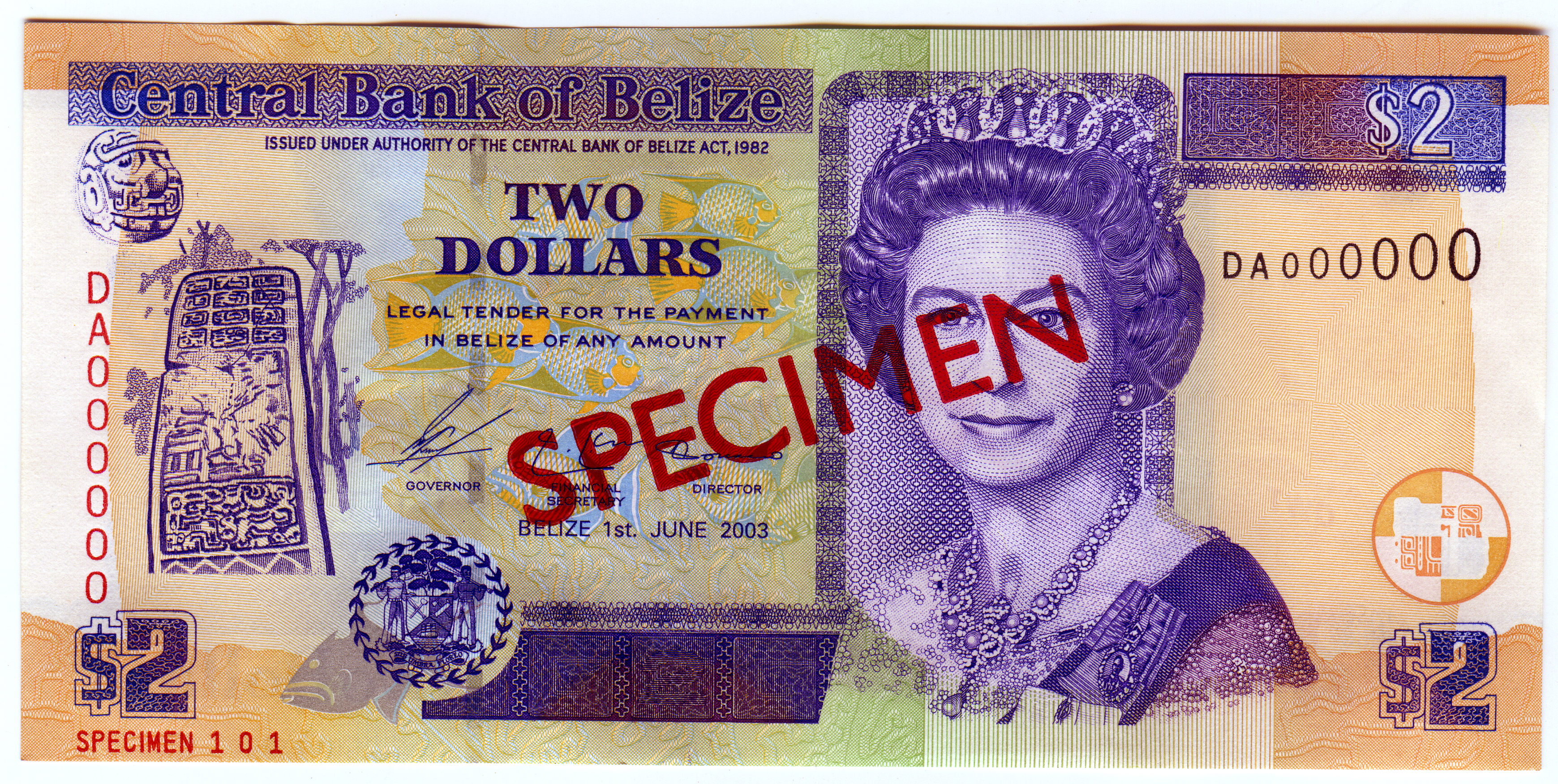 In 2003 the Central Bank of Belize upgraded its family of banknotes. In this issue, three security features were enhanced to make the notes more secure against advancing technologies and more easily recognizable as genuine. One such feature, the "periwinkle intaglio overprint", only appears on the $100 note. The other enhancements, such as the wider security thread and the denominational electrotype (under the watermark), appear on all denominations.